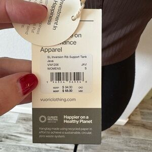 Vuori Inversion Rib Support Tank NWT Small Java Brown