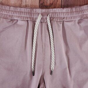 Soft lavender track pants. Elastic waistband with drawstring. Comfortable fit. Very cute and comfortable, but I don’t wear them very often.