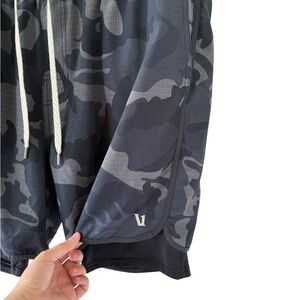 Vuori Mens Stockton Layered Compression Performance Shorts in Blue Grey Camo