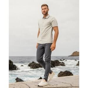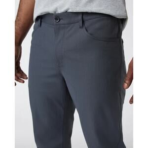 Vuori Meta Pant in Charcoal. Size 28. Features zip fly with button closure, 4-pocket design, hidden back zipper pocket, belt loops, and tapered leg. 100% Polyester. Excellent condition, no flaws.