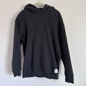 Vuori Restore Oversized Woman's Fleece Hoodie, color washed black - color sold out Woman's Size: Small (it's oversized so it may fit up to a medium) Features: Long sleeve, pullover, hoodie, Bio Wash Finish (so its very soft), Organic French Terry, Oversized Fit, Rib Cuff, 66% Organic Cotton, 34% Polyester, treated with a bio -wash for an extra-soft handfeel and worn-in look. Condition: Great condition, minor flaw, small stain on the front of the hoodie, see last picture.