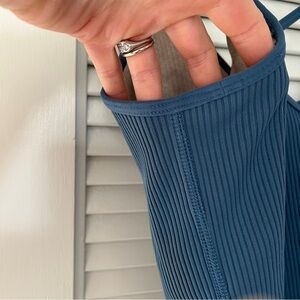 Vuori Ribbed Crop Tank w/ Built in Shelf Bra | Stone Blue | XL