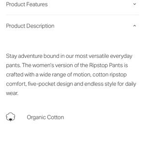 (Description from website is not for this exact pant however the material is the same there is only 4 pockets instead of 5)