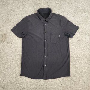 Vuori Short Sleeve Ace Button Down Charcoal Men Size Large Small Holes See Photo