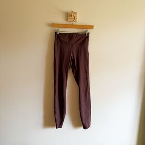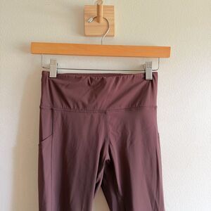 Vuori Stride Leggings in Chestnut. Ready for movement, the Stride Leggings are your token running leggings. Made with performance stretch nylon, these leggings are quick drying with subtle stash pockets and a 7/8 length. In excellent condition. No holes, rips, or stains. Ours is a smoke free home.