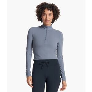 Vuori Studio Half Zip Jacket Shirt Top in Light Azure Blue. Customize your climate with the Studio Half Zip. With long sleeves and a mock neck, this fitted pullover is exactly what you need for warm ups, cool downs and the stretches in between. BreatheInterlock™ is peachy to the touch, with smoothing coverage and an air brushed finish Fits snug to the body. Hits at hip. Like new condition.