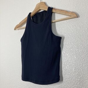 Vuori Tank Top Womens Small Black Ribbed Racerback Built In Bra Cropped Yoga