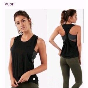 Vuori Twist Back Tank Top Womens Large Black Athletic Activewear