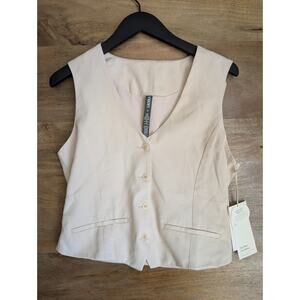 Vuori Vest Womens Medium Cream Crop Performance V-Neck Button Front VW1244 NWT