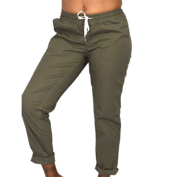Vuori Vintage Ripstop Pants Green Cuffed Ankle Crop Cotton Drawstring Pull On XS