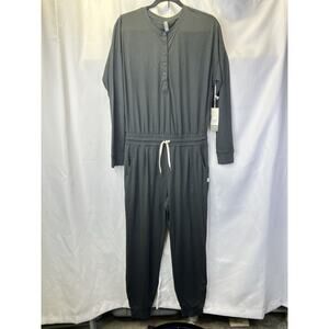 Vuori Women's Lux Henley Jumpsuit Size Small Henley Black Heather Tie Waist NWT