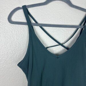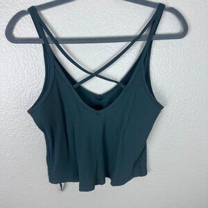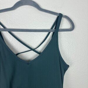 Vuori Women's Rib Crop Tank XL Blue Stretch Athleisure V Neck Strappy Back
