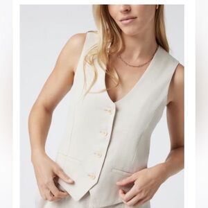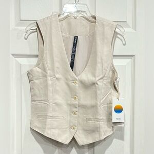 Vuori Women's Small Coastline Vest Milkweed Cream NWT Drapey Twill Button-Up