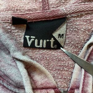 Vurt Hooded Front Zip Light Weight Sweat Jacket Size Medium. Gently used condition. Drawstring hood. 2 front pockets. Very small hole edge left side pocket. Measures chest 41”, length 26”, sleeve 27”. Faded purple color.
