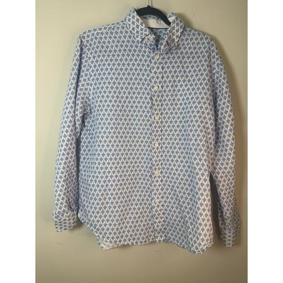 Vustra Men’s Blue geometric design Button Down Shirt Size L