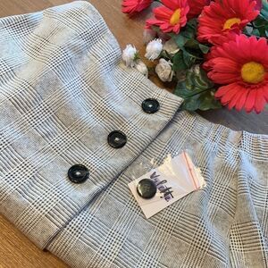 Side buttons, very stretchy, checkered houndstooth design, 3 faux buttons, extra button