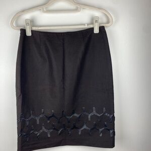 W BY WORTH BROWN WOOL PENCIL SKIRT WITH FAUX SNAKE LEATHER DETAILS US 4