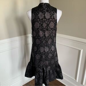 W By Worth Black Anthracite Lurex Brocade Jacquard Ariana Dress Size 6