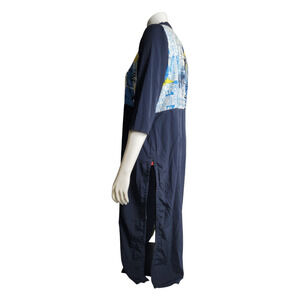 W India Abstract Graphic Maxi Tunic Dress Sz 14 Blue Yellow Inspirational Words