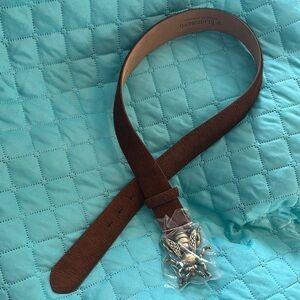 W. Kleinberg Gold Bee Buckle Brown Leather Belt