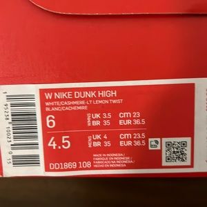 W NIKE DUNK HIGH WHITE /CASHMERE LT LEMON TWIST BLANC/CACHEMIRE