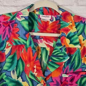 W Neiman Marcus Silk Button Down Shirt Vintage Women's Size L Hawaiian Floral details: