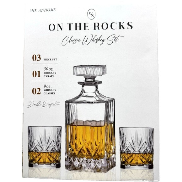 W. S. On The Rocks Classic Whiskey Set - 2 glasses 9 Oz. and 1 carafe 30 Oz.