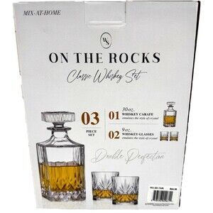 W. S. On The Rocks Classic Whiskey Set - 2 glasses 9 Oz. and 1 carafe 30 Oz. Emulates the style of Crystal.