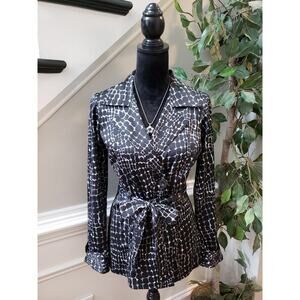 W Wrapper Women's Size S Black/White Polyester Blend Trench Jacket Blazer