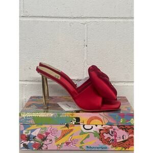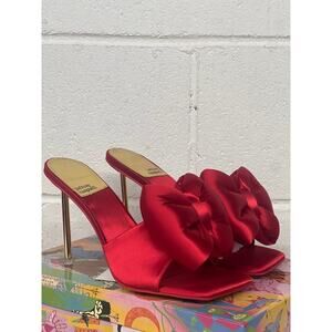 W/ box Jeffrey Campbell Sz 10 Red Satin Bow Down Pin Heel Square Toe Sandals