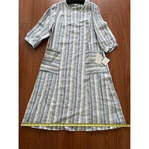 W by WORTH WOMENS Full length Blue White Striped Linen TUNIC V-NECK Size M