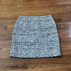 Chic tweed skirt. Black and white pattern. Perfect for any occasion.