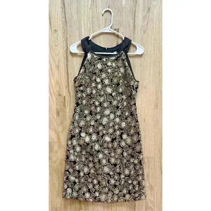 W by Worth Brown Dress with Leopard Details + Gold Sequins, Sleeveless, Size 4