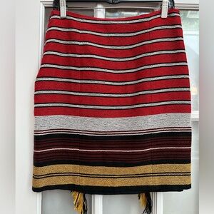W by Worth Burgundy Gold Striped Fringe Skirt Boho Aztec Western Size 4 Small S