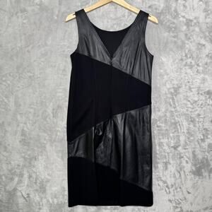 W by Worth Dress Womens 2 Black Genuine Leather Panel Sleeveless Sheath Modern
