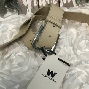 W by Worth Taupe Pebble Leather Knot Belt Size Medium