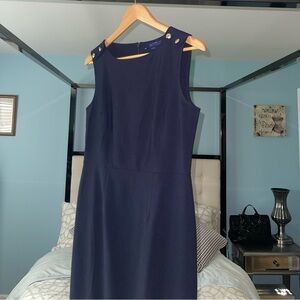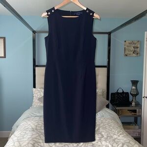 W by Worth Navy Blue Sheath SHILOH 95% Wool 5% Elastane Spandex Stretch Sz 4