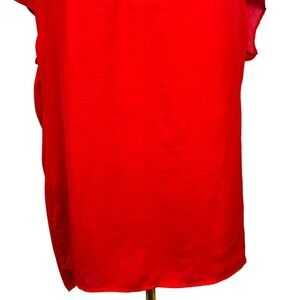 Keywords: W by Worth, Red Blouse, V-Neck Top, Short Sleeve Blouse, Women's Blouse, Casual Top, Career Wear, Office Attire, Relaxed Fit, Red Shirt, Elegant Blouse, Drapey Top, Contemporary Style