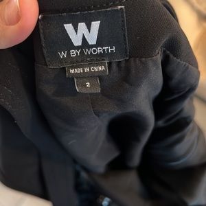 W by Worth black overalls/romper never worn. Bootleg cut on the lower half. No cross of overall top in back. Very nice for fancy events