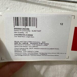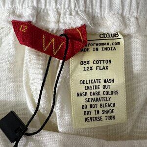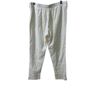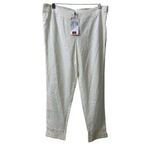 W for Woman Slim Fit White Cotton & Flax Pants With Lace Bead Hem Size 12