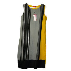 W for Women Black Yellow Grey Printed Sleeveless A-Line Dress