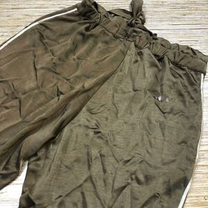 W-116 Heartloom paperbag waist satin wide-leg pant size L nwt*