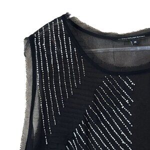W118 Walter Baker Beaded Metallic Sheer Frayed Hem Tank Top Black Silver Size M