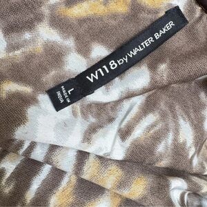 W118 Walter Baker Blouson Dress Large Brown Orange Animal Print Balloons Sleeves