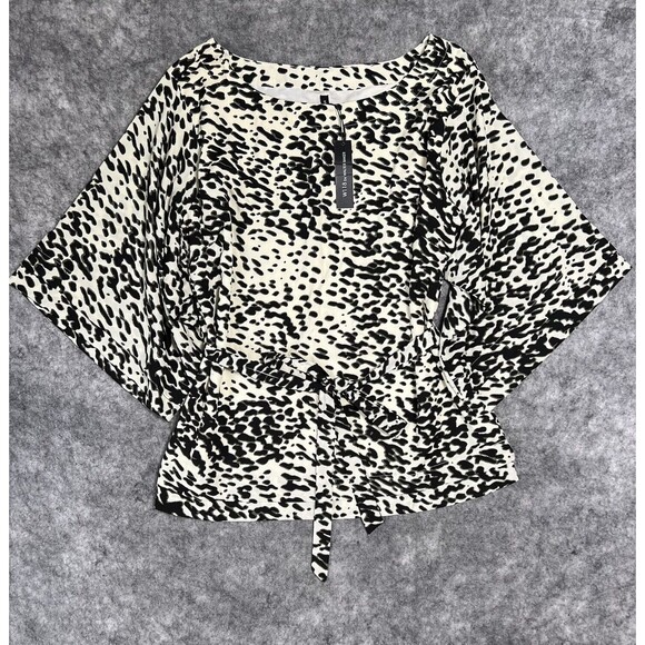 W118 Walter Baker Top Blouse Womens L Multi Tie Front Animal Print Boat Neck NWT