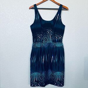 Women’s size XS W118 by Walter Baker sleeveless teal blue and green print dress. Excellent like new condition, clean nonsmoking home. Fitted at natural waistline and very flattering. Approx 16” pit to pit across bust, 13” across waist, 26” side length pit to lower hem.