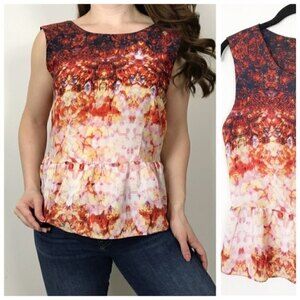 W118 by Walter Baker Colorful Bright Peplum Blouse. Size M. Lighter weight. Zipper up back. Great pre-owned condition.