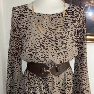 W118 by Walter Baker Womens Brown Animal Print Lined Dress. Size Large.