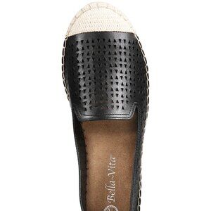 Bella Vita's Channing flats are the perfect look for a carefree weekend featuring geometric cutouts and a lighthearted espadrille wedge heel. Round-toe slip-on espadrille flats Perforated design at upper; lined and padded insole for added comfort 1" wedge heel Leather upper; manmade sole