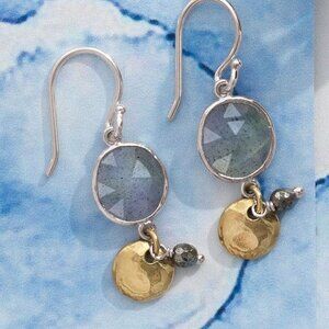 Silpada sterling silver, brass, labradorite, pyrite earrings, on French wires. They are 1 inch long. Can be found in the 2014-2015 catalog, page 84B. In new condition.